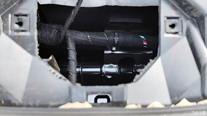 然后安装上车,这部分忘了拍照,我大概说一下,先找个够长的铁丝,不能太软,至少一米以上吧,我用的大概两米,从拆下来喇叭罩的位置往下捅,因为车中控内部大部分都是有空隙的,所以基本上很轻松就能从下面看见铁丝,然后把连接线连接主机的这头绑在铁丝上,慢慢的往回拽,小心别刮到东西,拽上来之后插上插头,线预留不要太长,太长了喇叭罩盖不住,然后把喇叭罩盖上,接下来启动车辆,注意,一定要先启动,然后把连接线的另外一头插在行车电脑的检修连接口上,大概位置在刹车踏板的上方,然后把多余的线整理好。OK,大功告成!!