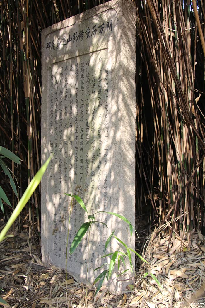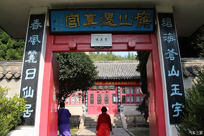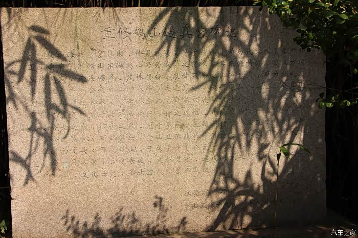 遇真宫始建于宋朝嘉定年间,历代都有重修。遇真宫门前竹丛里就竖着明朝万历年间重修碑记。我们去的时候遇真宫大门开着,但是正房屋门紧锁。遇真宫附近的“招鹤回鸣”,据说在这里击掌可以听到天空的鹤鸣。“水鸣天梯”,您登台阶时落脚稍重就会听到水声。这种自然现象很奇特。