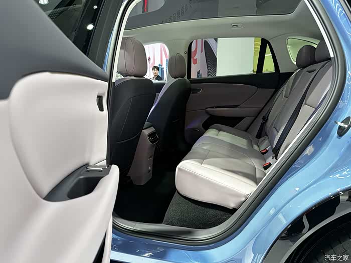 天工06的轴距是2900mm,所以后排的乘坐空间还是挺宽敞的。头顶还有一块全景天幕,所以整个后排的气氛还是比较明快的