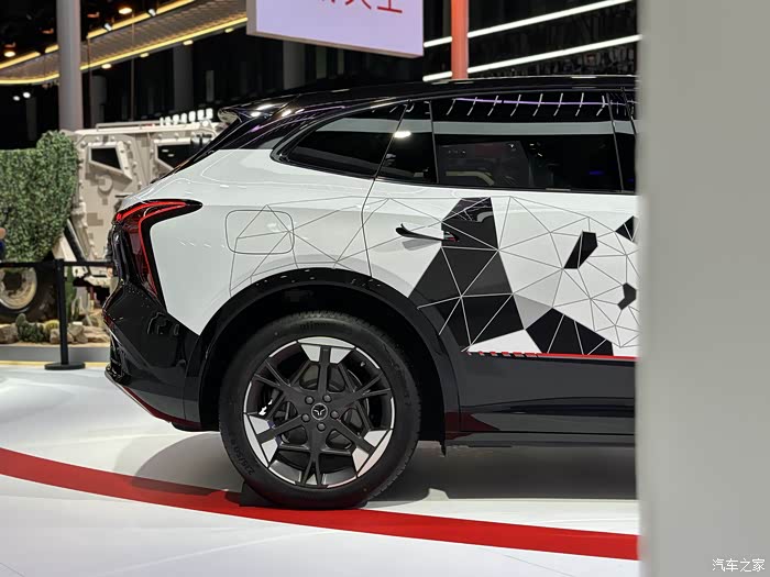 来到车身侧面,天工06的整体造型体现出了不错的运动属性。车顶部分略微向下倾斜,并配合双段样车的车身腰线,前后侧翼子板造型微微宽出车体,并与黑色轮圈相结合,使得其侧面看上去具有不错的力量感。在车身尺寸方面,车长4750毫米,轴距与05一样为2900毫米