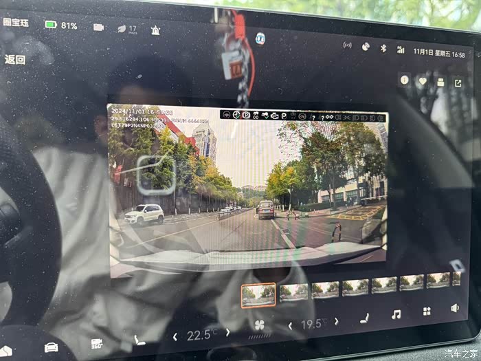 5. 那么以上是车机系统问题,再一个是摄像头问题,极氪001的行车记录仪可以说形同虚设,整个极氪001的全车摄像头我都觉得很一般,主要体现在清晰度不够上面,平时的360倒车影像就是很粗糙,画面颗粒化很严重,而这个问题再放在行车记录仪上就被无限放大,毕竟行车记录仪本来就是要求清晰度的东西,而极氪001的行车记录仪可以说只能摄清楚紧跟的前车车牌号,哪怕隔一辆车,哪怕侧方向错车都是看不清车牌号的,这个表现真的太差了,如果不是因为我觉得额外再放一个行车记录仪多事且不好看,我绝对早早就按个新的上去。