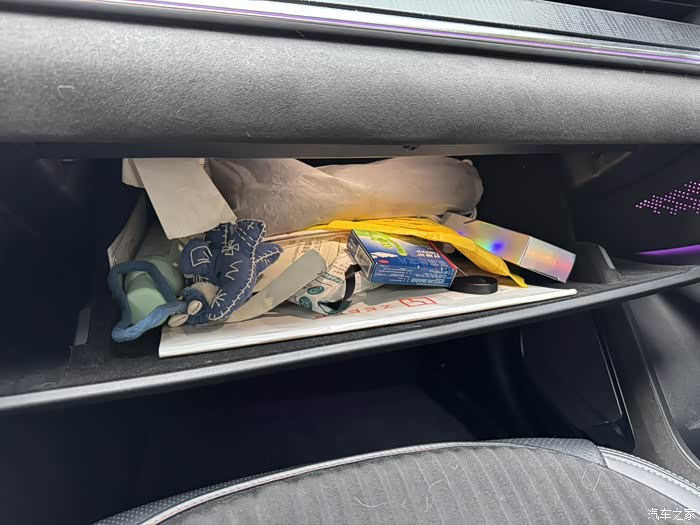 至于储物空间,是极氪001的一大优势,毕竟猎装造型天然就融合了suv的后备箱储物优势,而车前排的储物空间也还可以,扶手箱值得一提的是,不建议大家买商城的那款扶手箱分层板,很鸡肋,且放进去又不好拿出来,反而把扶手箱空间弄浅了,手套箱的空间倒是不错,够宽够深,还是能放下不少东西的。