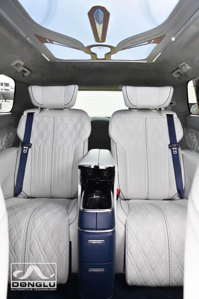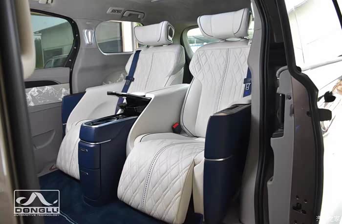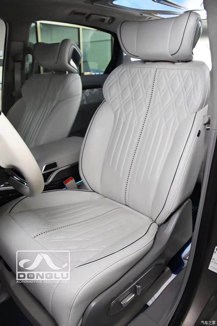 在细节上,四座的设计让后排的航空座椅拥有宽阔的座椅型面以及更舒展的靠背和扶手,宽大的头枕设计为乘坐提供了更好的体验。在功能性上,通风加热按摩腿托等多项调节极大满足乘客的舒适性,座椅侧边的电动解锁功能可以实现360度旋转。同时座椅配备了充电接口以及中央杯架,主副驾