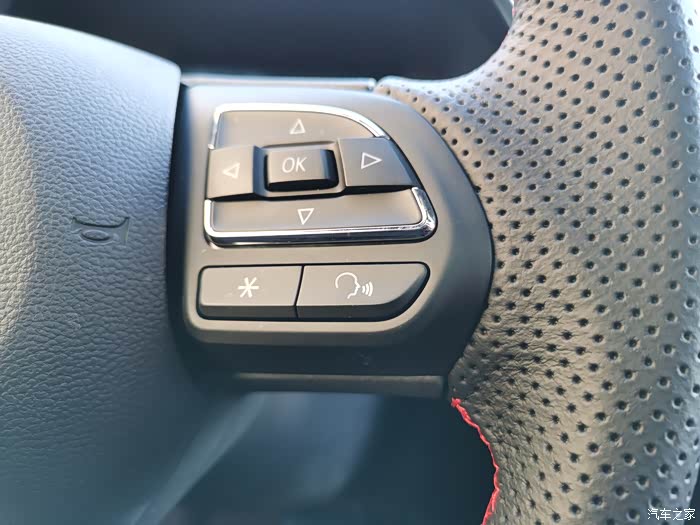 多功能方向盘,按键清脆。