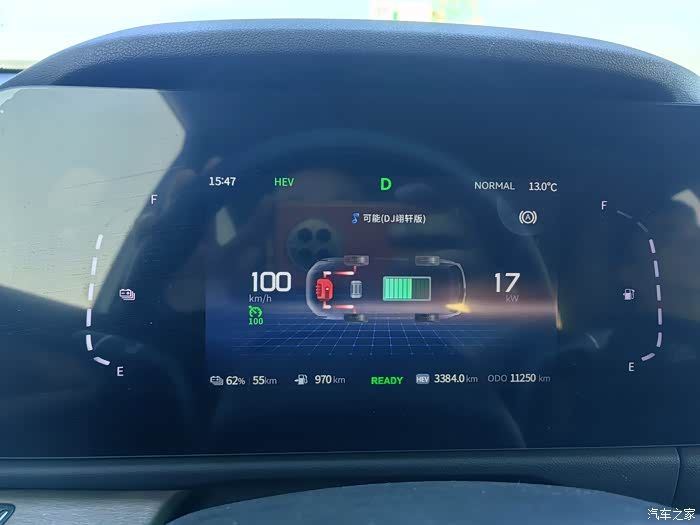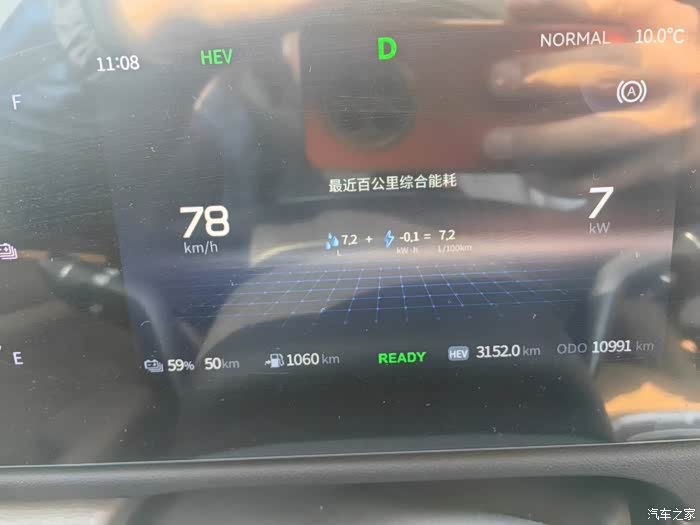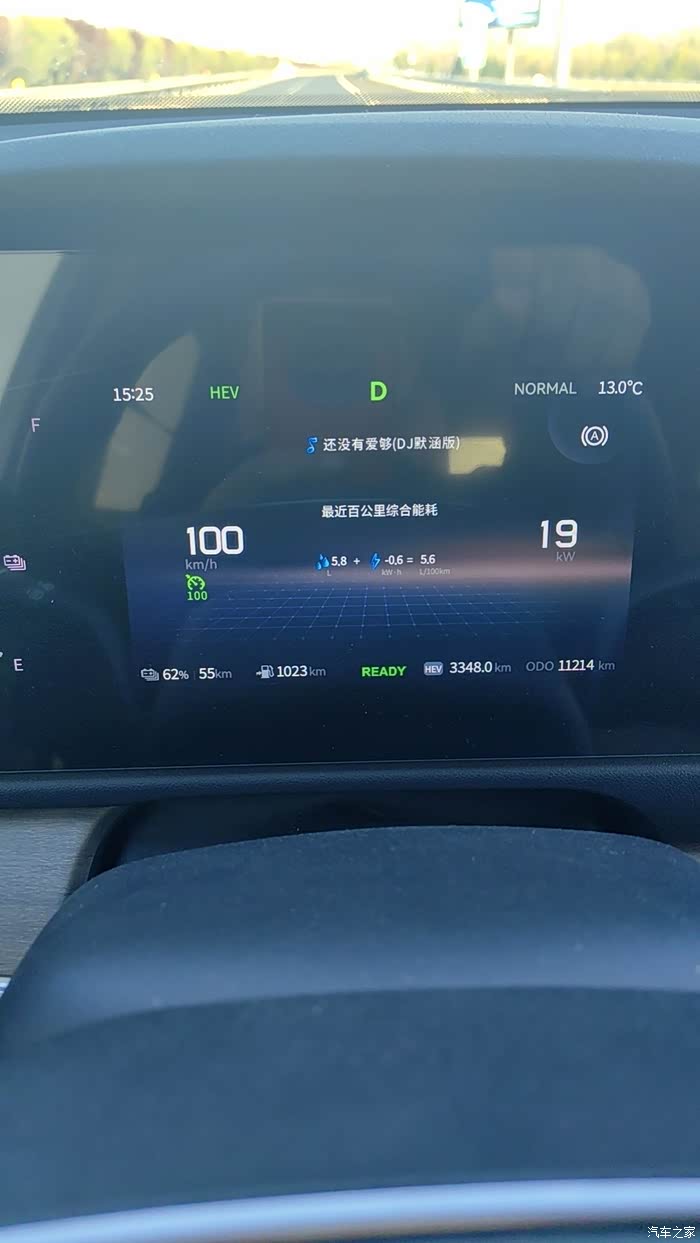 山东路况大家都知道,很平坦,有坡度的路段并不多。全程定速115KM/H,车辆高速恒定行驶的时候是发动机直驱,只有超车踩油门的时候电机才会工作,提供动力。
