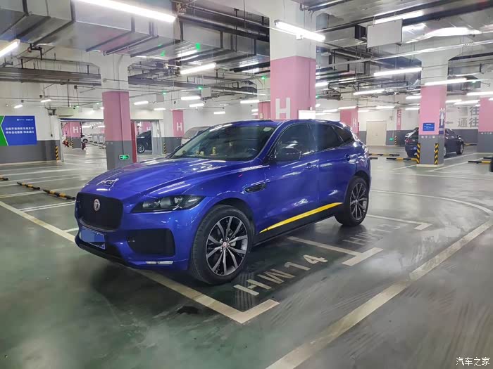 f pace的外观设计是没得说的,毕竟在17年获得了两个世界设计双奖。至于车身颜色,每个人的审美不同。白色干净显大,深蓝和黑色商务,红色活泼,绿色英伦,灰色高级。而水晶蓝色,是我认为最能体现它线条和动感的颜色,在我买的这个年度改款之前,水晶蓝色是首发限量版专属,不免有些遗憾。而这款配置,颜值唯一的不足,便是轮毂偏小。还有都市车型的前脸,led雾灯与保险杠是分离的,在行驶过程中如果遇到碰撞挤压等,下面的黑色塑料杠条的卡扣很容易掉落,而且掉落后便要换整个前杠(我之前已经换过两次),而运动和首发版本在设计上便没有这个问题。其次就是尾部保险杠设计略显单薄,不过已经在今年的改款车型上,优化了后保险杠的设计。