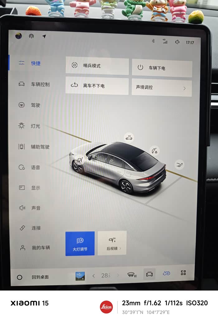 3,设置里快捷功能,哨兵模式,车辆下电,车辆不下电和声境调控,中间还有车后视镜折叠,天窗,加油口,后备箱,大灯等快捷开启方式,很得心应手,很顺。
