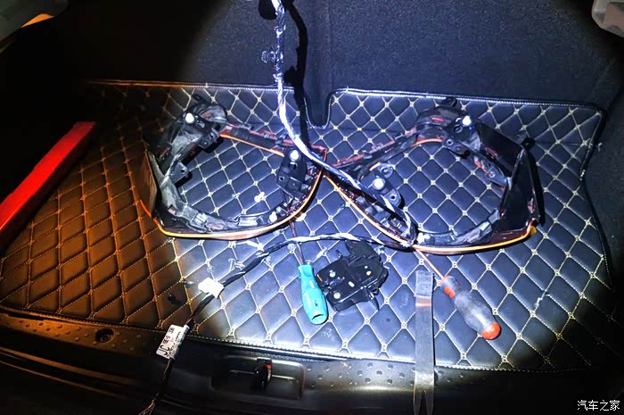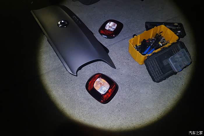 改极致版尾灯以及原厂后视。快过年了,店里小工也走了,师傅亲自上门安装,这时候已经是晚上了。开手电开工!
