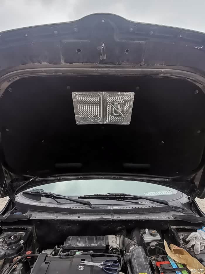 蜗牛喇叭也换了,之前2个喇叭有点破音。重新换了蜗牛喇叭位置,改到了中网里边。然后又在朋友汽修厂搞了一个拆车高音蜗牛,让我加在了机舱里边。3个蜗牛喇叭,那是相当响亮。