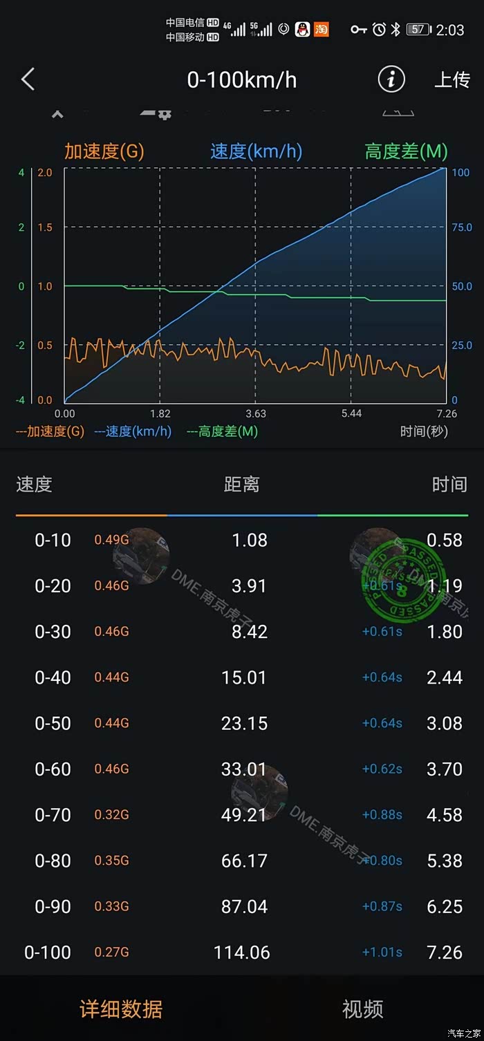 装完之后,首先是感觉动力方面,其实体感的动力基本没有减弱,用obd表简单掐一个时间,比之前17寸胎稍慢0.1s;用机车小子大致测了一下,7.6s,离合器中途断开了一下,损失了一些时间。之前原厂胎最好能跑到6.7s,平均在7.2s附近。所以总体来看,动力上没有什么损失。