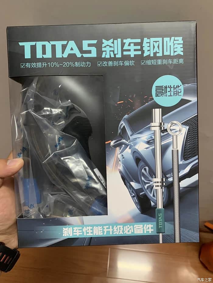 通常在改装卡钳的时候,钢喉也会一起更换,很少有人像我一样单独去改装这个。常见的钢喉品牌有GOODRIDGE,FECC。这一次我选择的是某国产品牌。在刹车脚感上有不小的提升,非常非常的线性,刹车踏板踩下去你就知道,这是能给你信心的刹车。制动效果也有15%左右的提升。