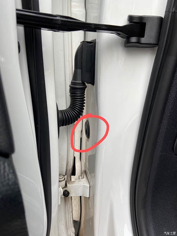 0、打开天窗,在上面倒水,看下面的排水孔是否正常排水;天窗四根排水管,前面两根的出水口能看到,在前门铰链附近;后面两根排水管看不到,在后轮轮毂框里面。