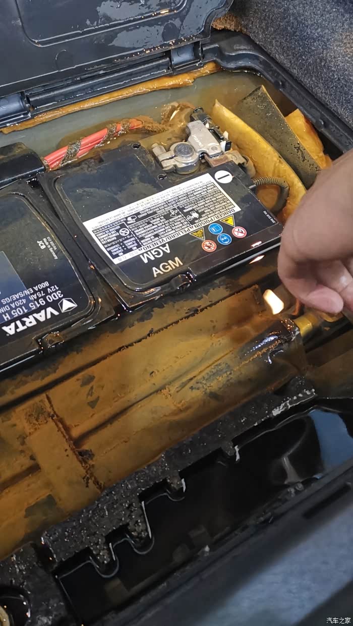 4、查看电瓶的位置,看是否潮湿或有积水。