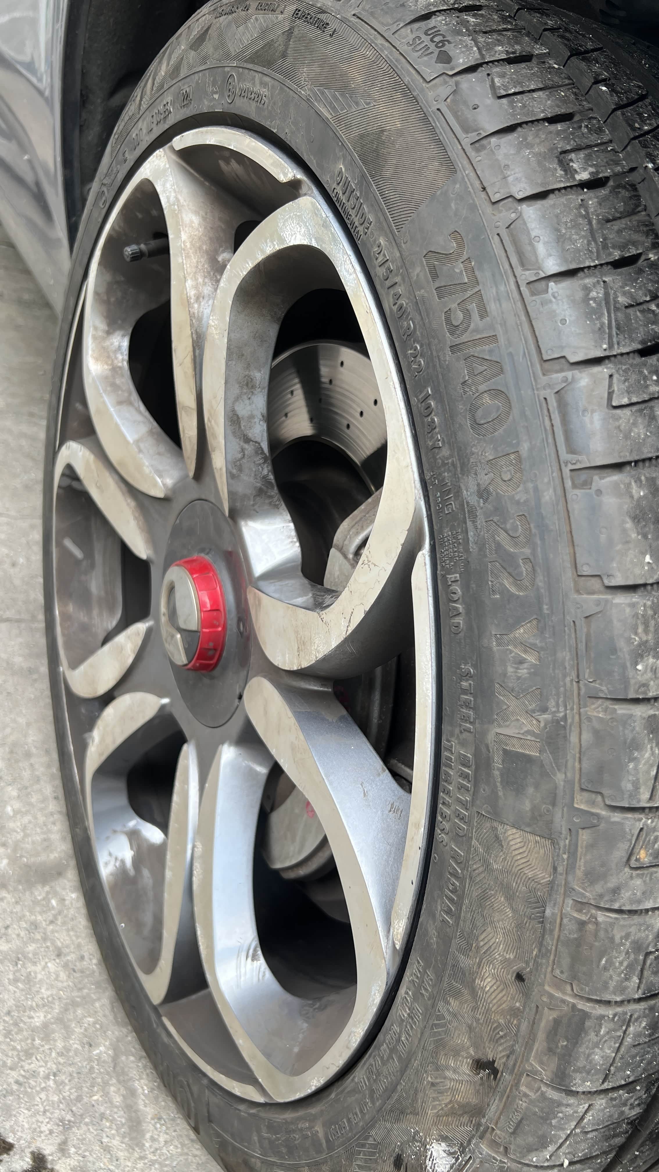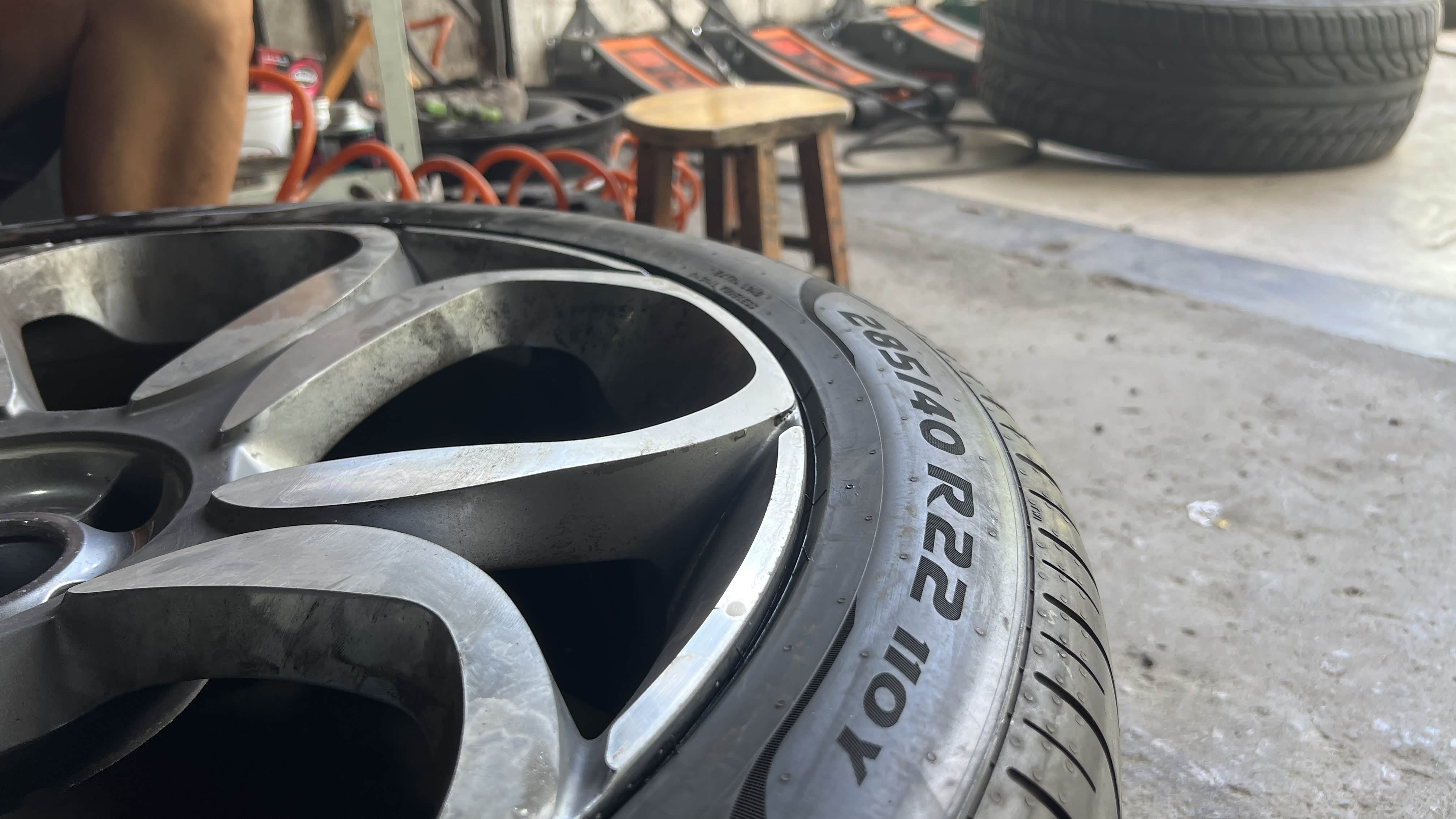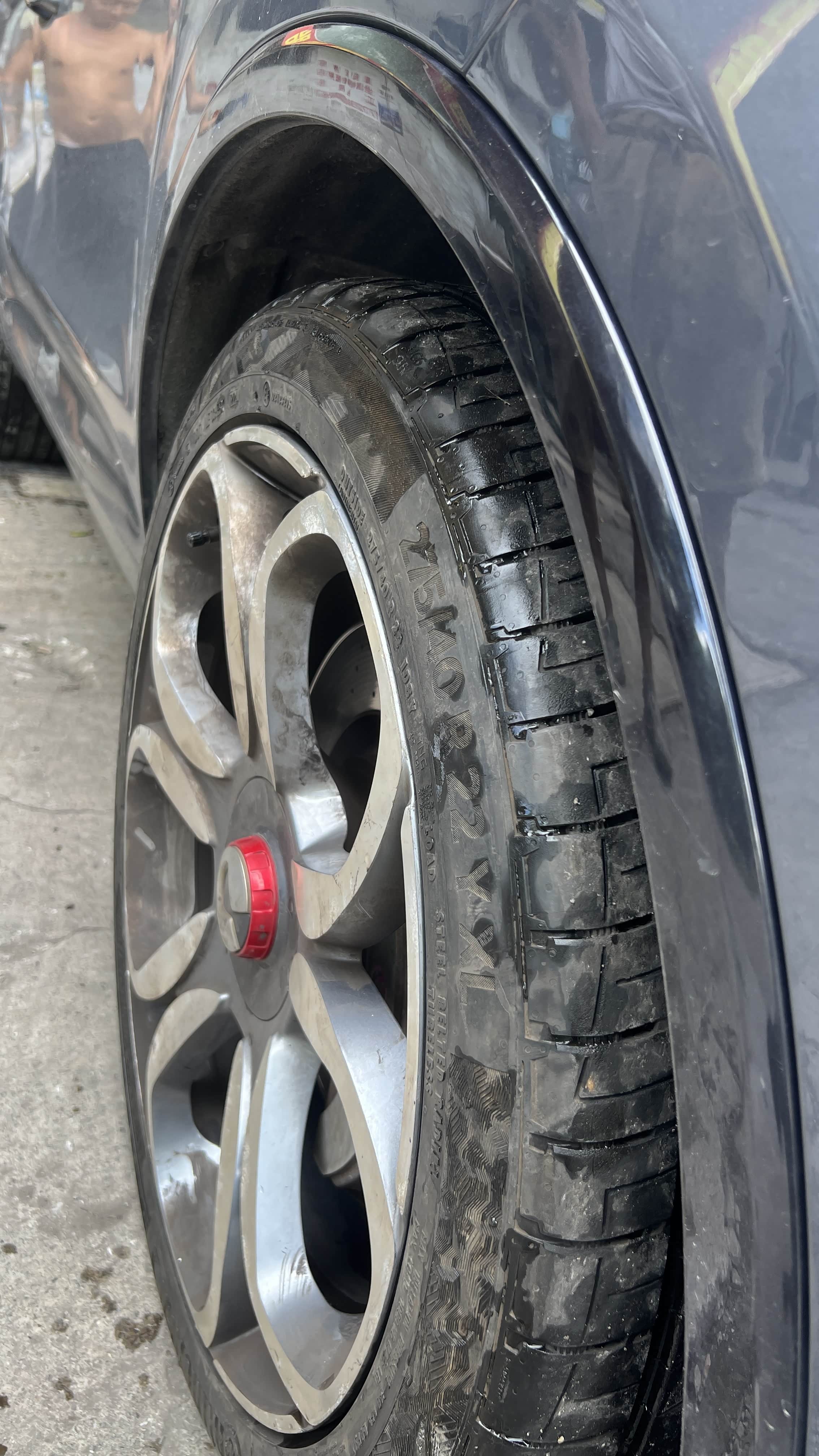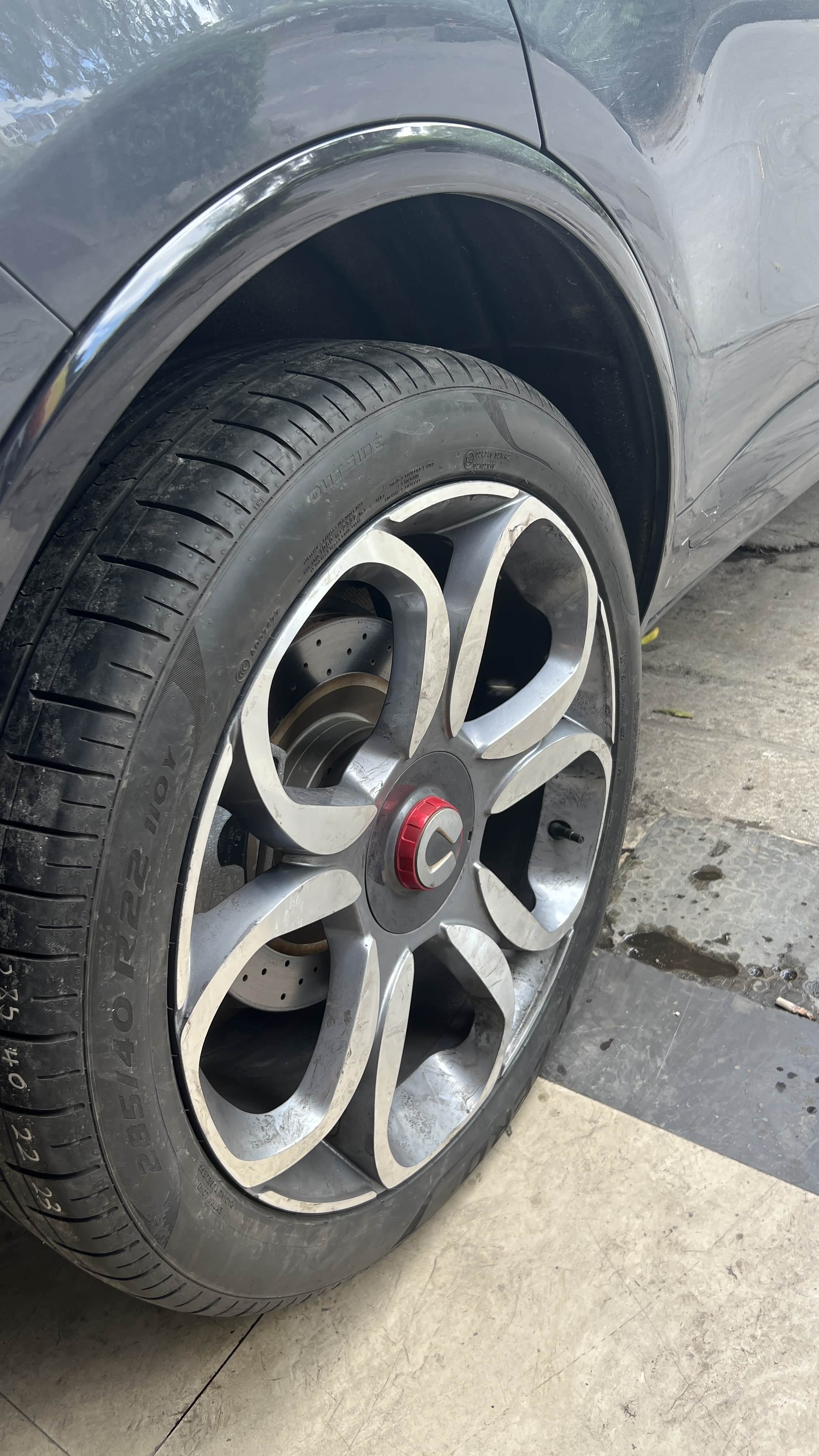腾势X原厂配265/40R22轮胎,在听取车友建议下准备更换一套275/40R22的轮胎,昨天在更换时轮胎店老板看到车后,建议前轮更换275/40R22的轮胎,后来更换285/40R22的轮胎,