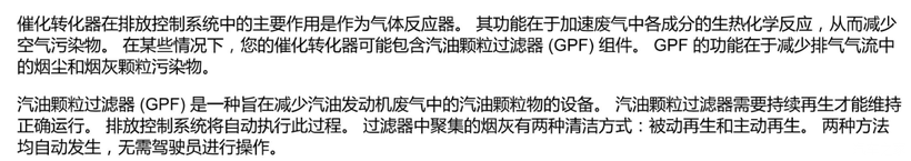 所以说,遇到前面那些症状而没有出现报警的情况,应该是说明说中提及的过滤器(GPF)“再生”行为。用“颗粒捕捉器堵了”这个词汇就好比是跟一个普通感冒病人用了“病入膏肓”的词汇,是不恰当的。
