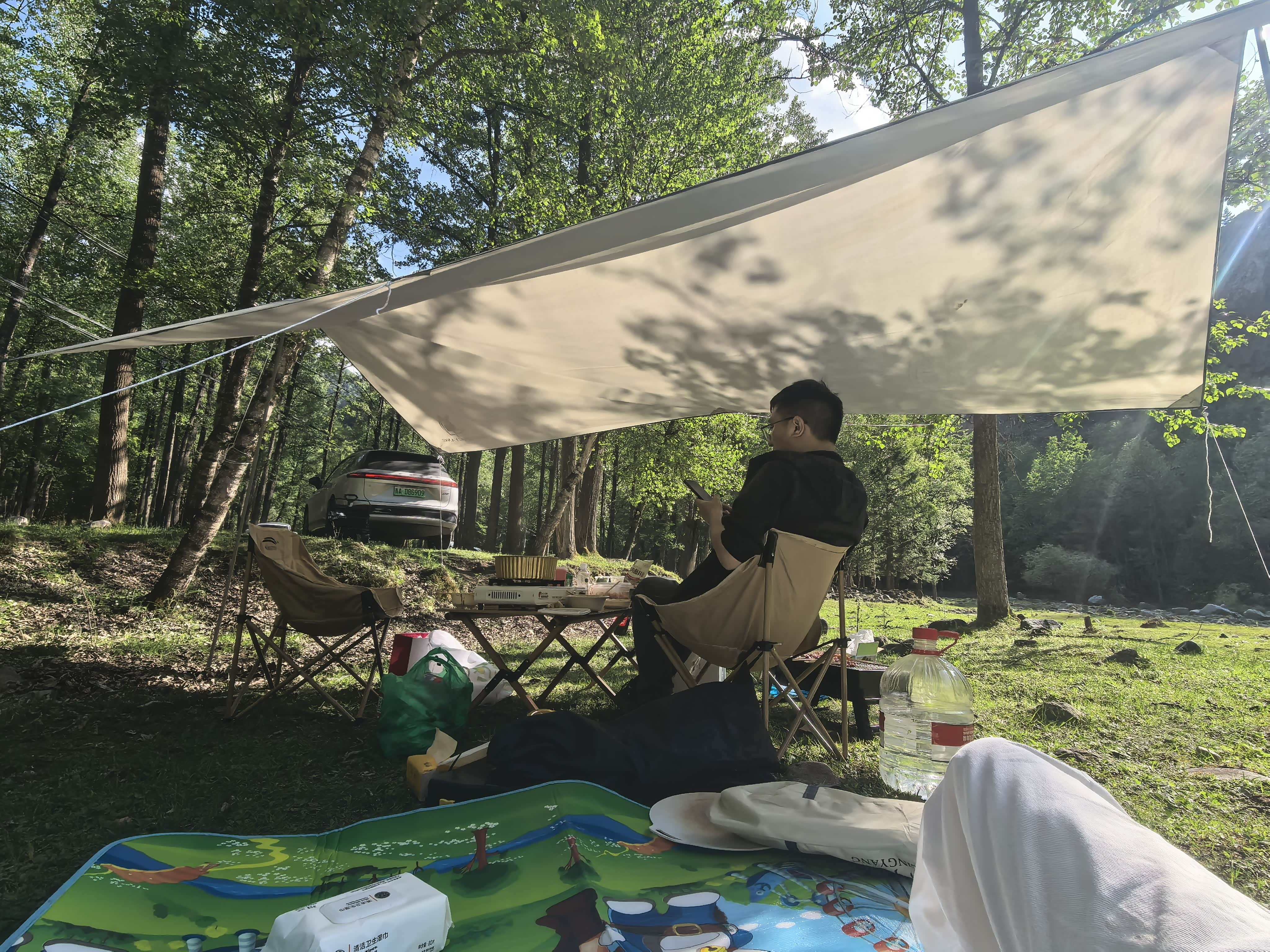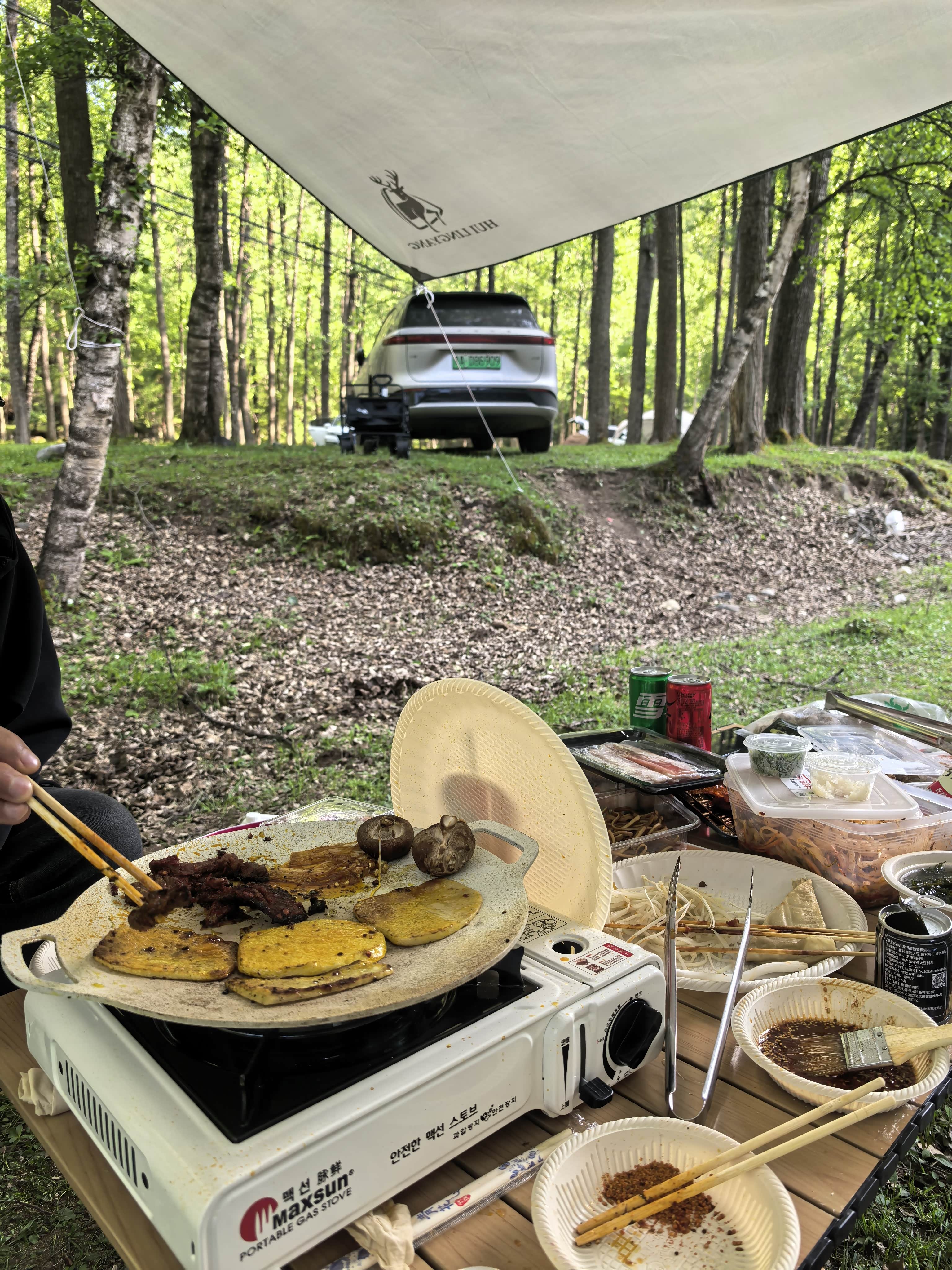 抵达互助北山露营地后,小鹏G9的车外音乐播放系统成为我们本次野炊的最大亮点,我们选择了一处靠近溪流的平坦区域,一切准备好之后,我们打开了G9车外扬声器系统,这个时候我们就一边享受美食的同时,还可以听到我提前准备的露营歌单。在山水之间播放轻音乐,真的大幅提升露营的仪式感,扬声器就算在户外播放效果依然清晰饱满,操作也很简单,不用坐在车内,我也可以通过手机APP操控,随时切换歌曲、调节音量等。