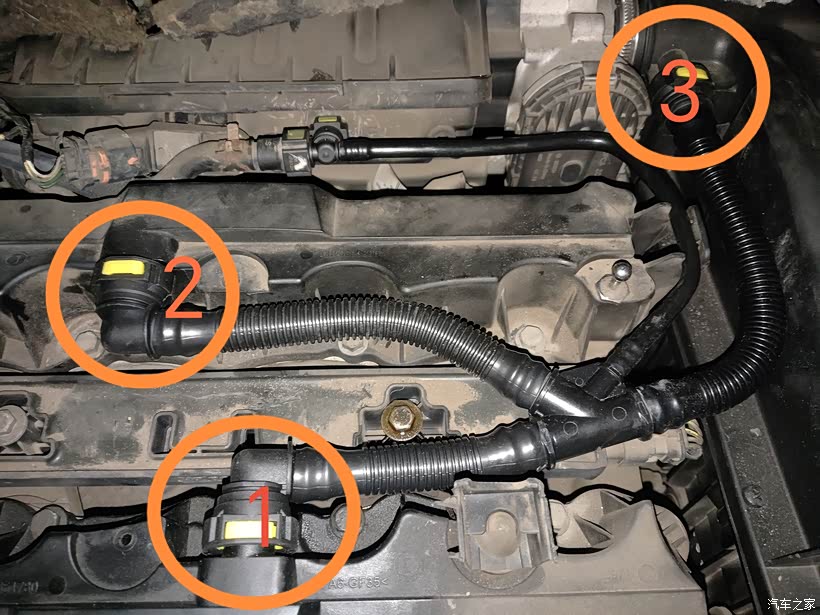 期间又跑了80公里,异常声音还是存在,车子也没有明显故障。我又把图四的3个接头重新拔插了一遍,期间发现3个头都有负压。装好后,用纸巾在接头处做了一个简单的测试,没发现纸巾被吸或被吹走。按压管线,晃动接头,声音也没有什么变化。