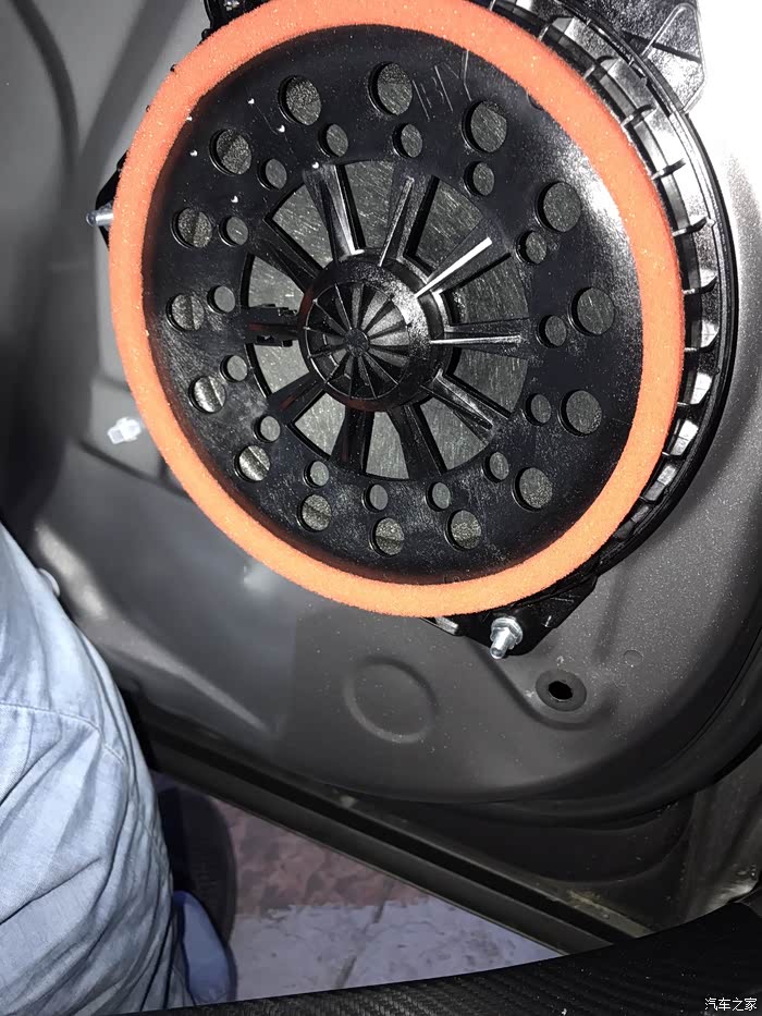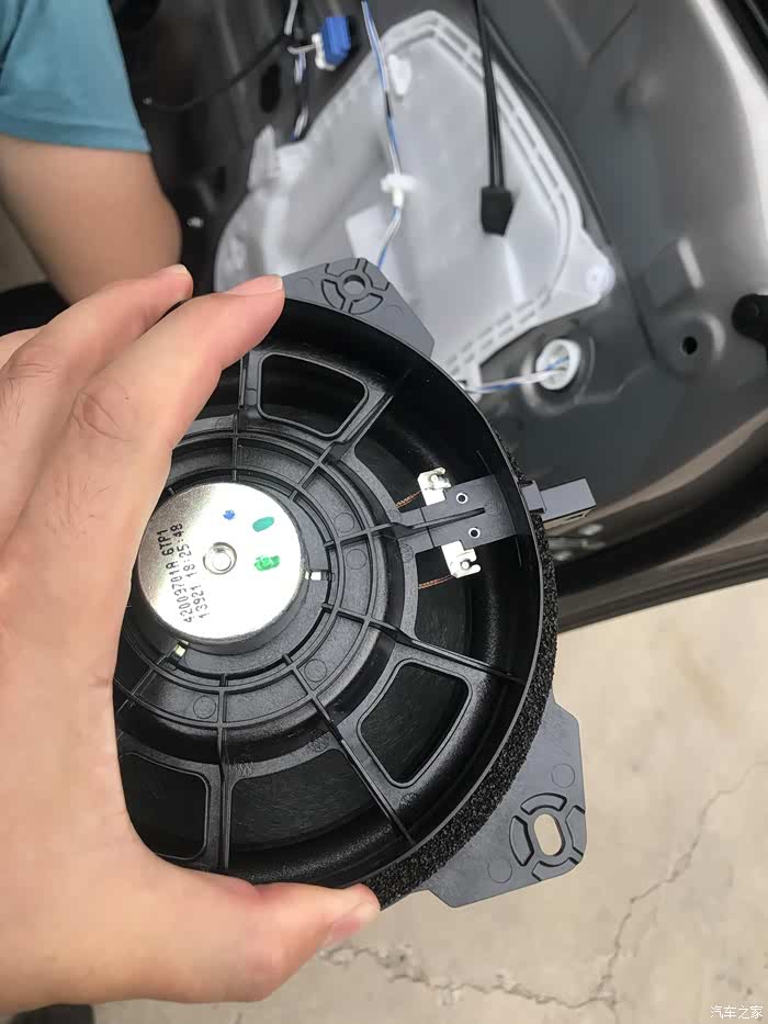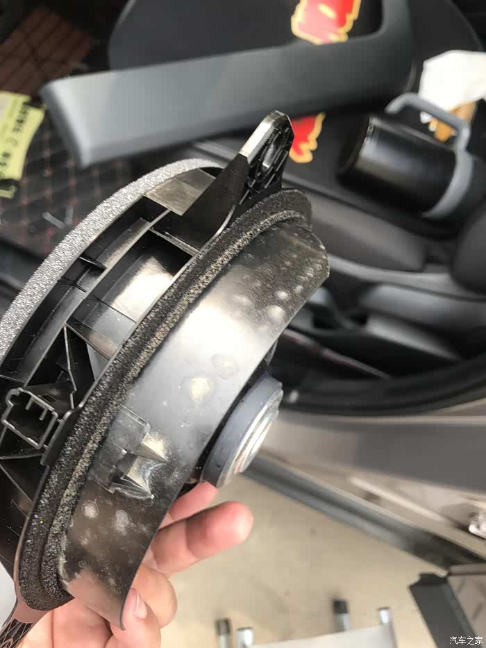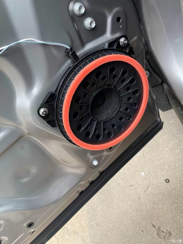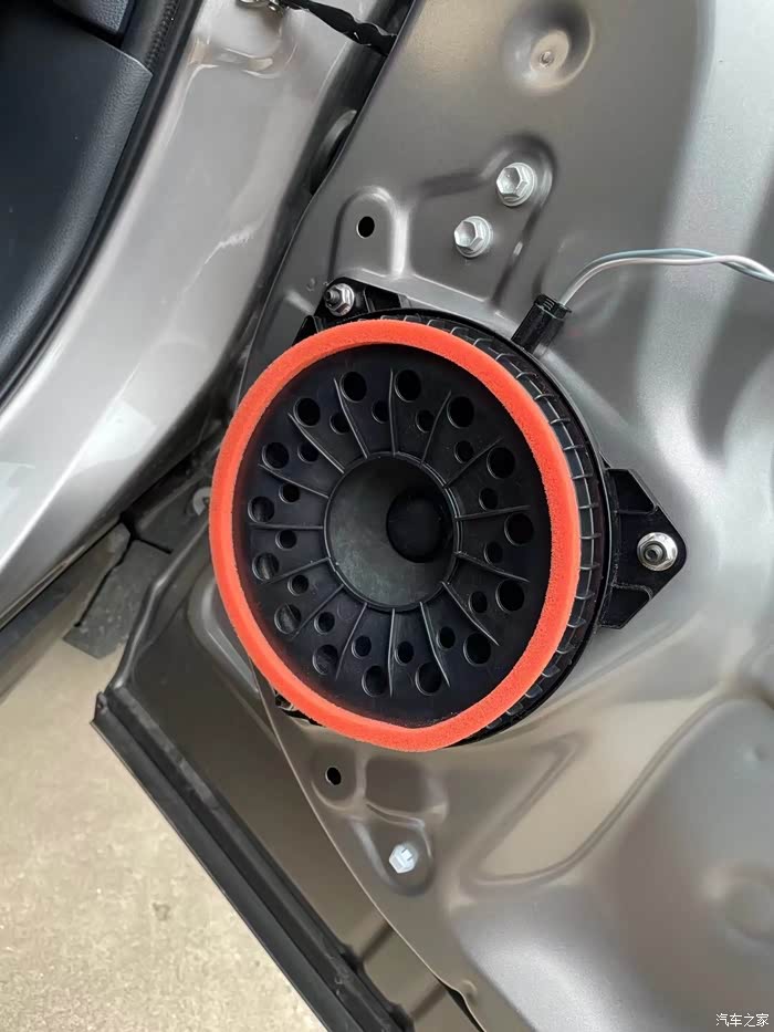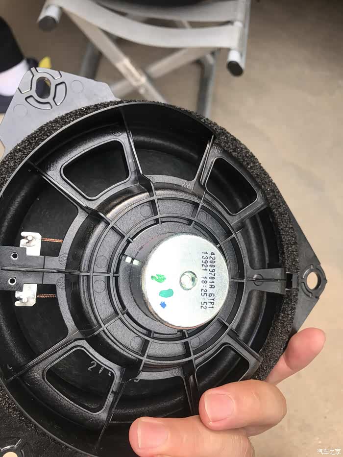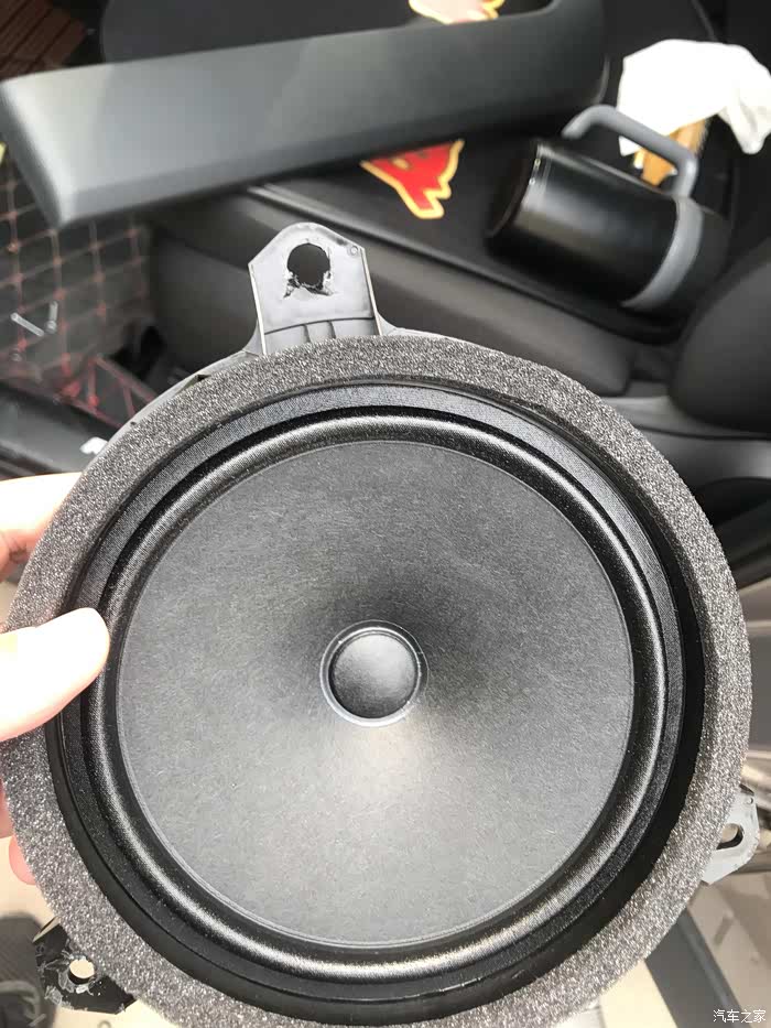 原厂是电装的轻如鸿毛的喇叭,三个铆钉用偏口剪开,不需要电钻