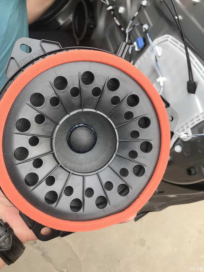 轻松撬开高音盖板后对插插头,装上同轴喇叭