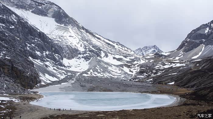因为牛奶海结了很厚的冰,不少人直接站在湖面上拍照。