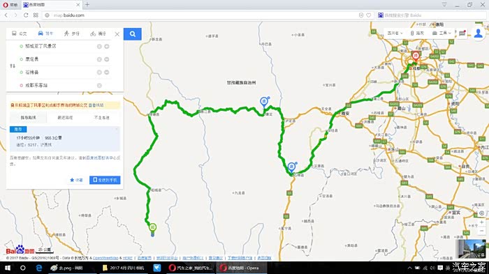 百度地图不知道什么时候更新了路况,百度给出的线路就更新为从康定到石棉,再从石棉上高速到成都。