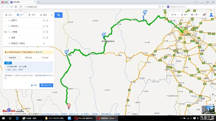 联系完天全县110之后又分别用高德和百度规划了一下线路,高德仍然是返回新都桥。。