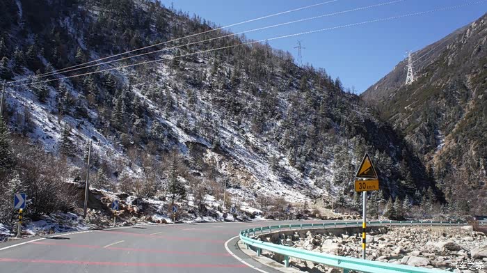 海子山过了之后,在桑堆乡那里有个三岔路口,有一个路口继续沿着小河道走,这就上了S216省道,然后就要一路走S216到日瓦乡,即香格里拉镇。
