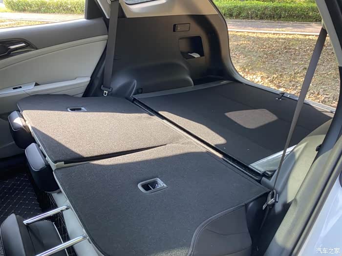它的后排座椅还支持放倒,放倒后能形成一个近乎纯平的大空间,我现在就已经开始规划之后的出游了。