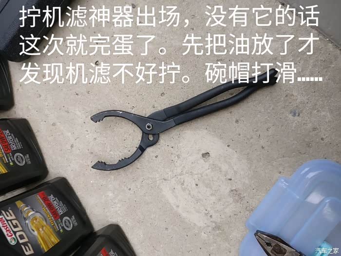 4.机滤碗帽型号,原厂机滤可用901,14牙的,曼牌610/6机滤要用902,14牙。机滤如果拧太紧的话,用碗帽往下拧可能会打滑,这时候就需要钳式的机滤扳手了,一个扳手搞定各种机滤。缺点是会受到车底部空间限制,杰德没问题,耍得开。