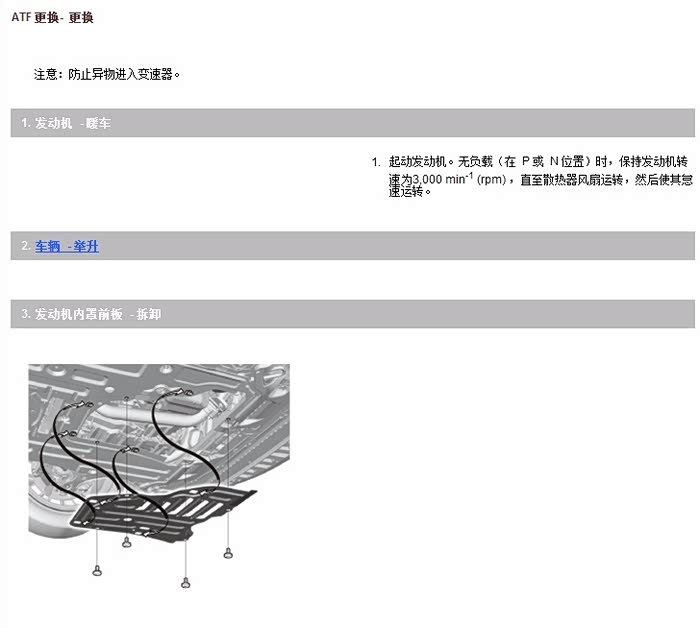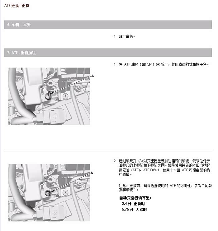 3.5AT原厂变速箱油型号是:ATF DW1,重力换油的话,一次能放出2.4升。只换一次的话,买三桶一升装即可。