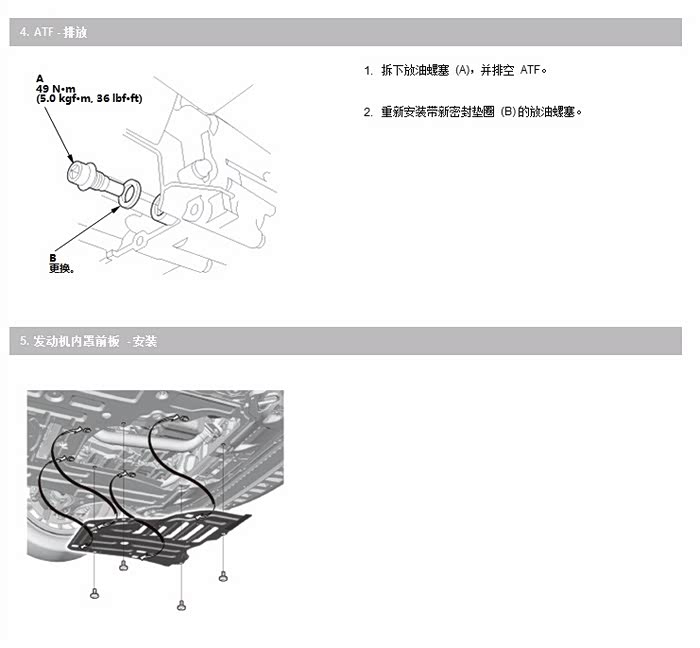 5.放油螺丝都是逆时针送,顺时针紧。机油放油螺丝厂家要求扭力是40牛米,变速箱的是49牛米。