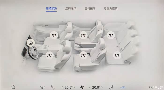 支持方向盘加热、6坐座椅加热(控制界面)