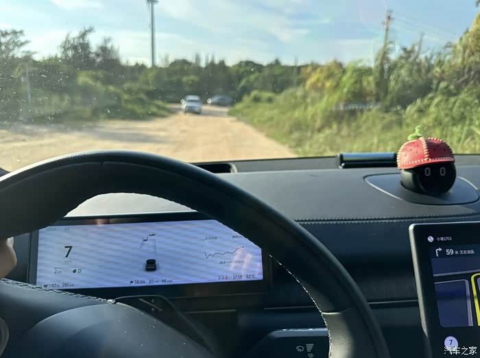 主要是通过电脑调节动力输出刹车和悬挂,保持最大的四驱动力输出。因为电车动力比较强,加上四驱,一般烂路还是可以应付的。沙滩靠海那些很厚很软的沙堆没去,外围的泥沙路我是开遍了,因为路面不平不断有点颠簸起伏,其余也没什么问题,一直踩就一直走,这种泥沙路可以轻松面对。