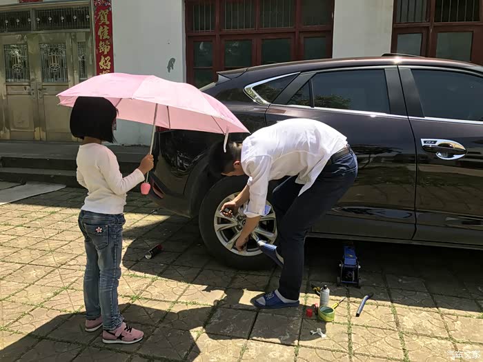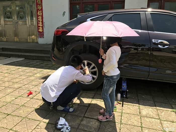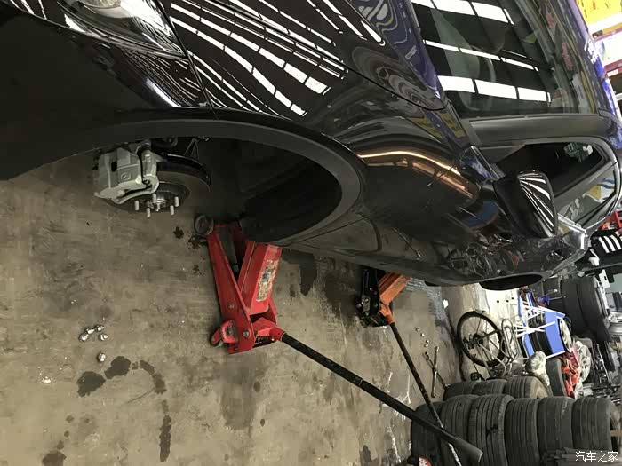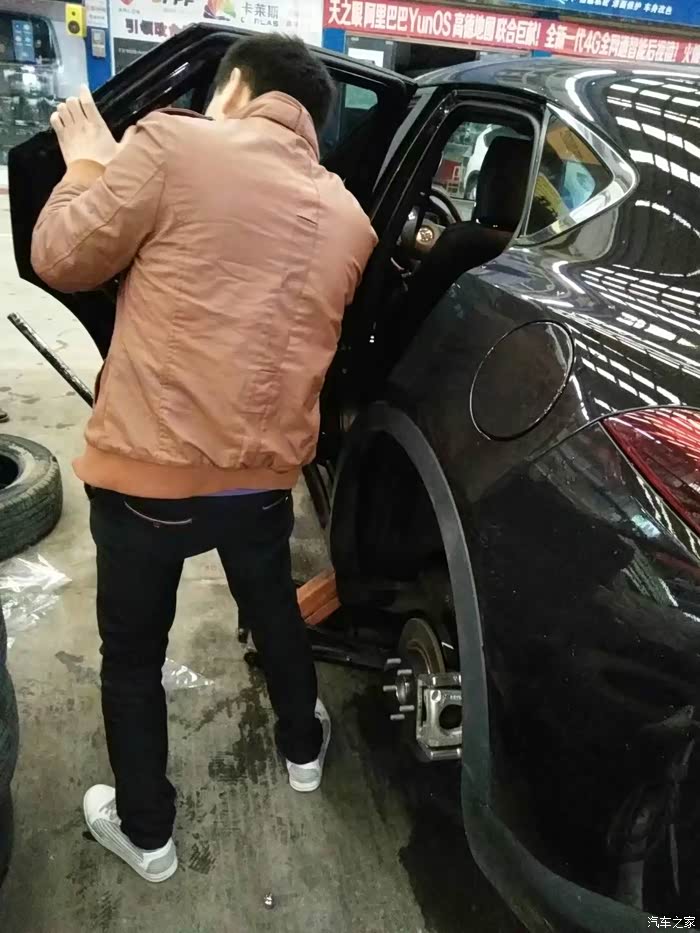 在就是刚自己喷卡钳,生命在于折腾,永不停止,出去找修车的师傅借了个小千斤顶和扳手,别问我为什么不用车上带的。那个是真难用啊,摇的手累。