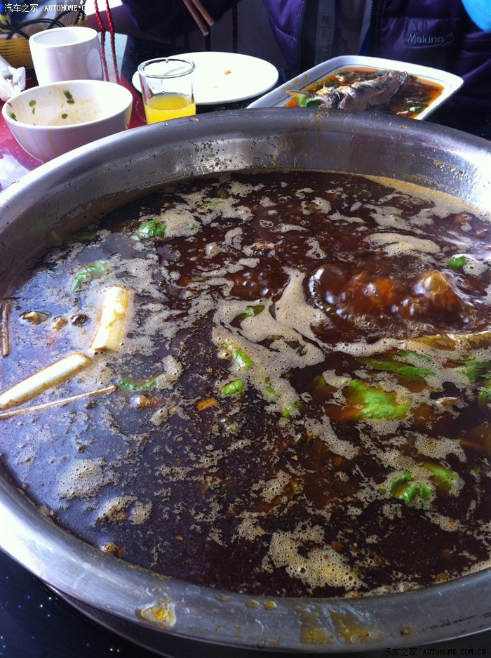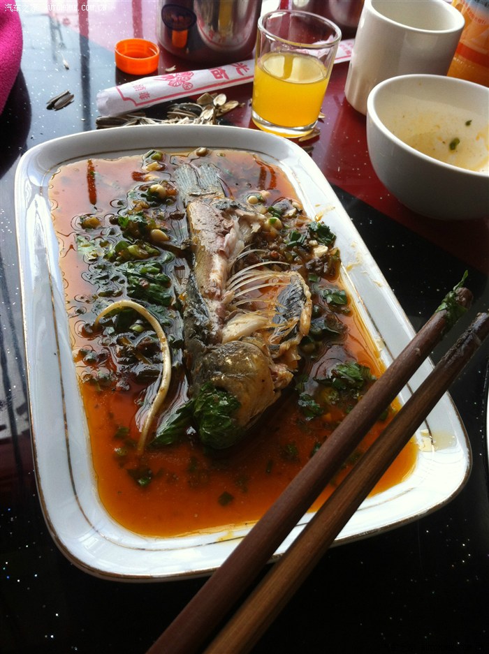 狮泉河的第一顿美食,啥菜名忘了,就叫鲫鱼跳龙门吧。火锅型的,全菜籽油烧煮,然后用蘸料蘸食,很有特色!两孩子好几天没能吃上一顿像样的饭菜了,看着孩子们狼吞虎咽的样子,挺心疼的,等孩子们吃完吃饱了我们再吃吧。