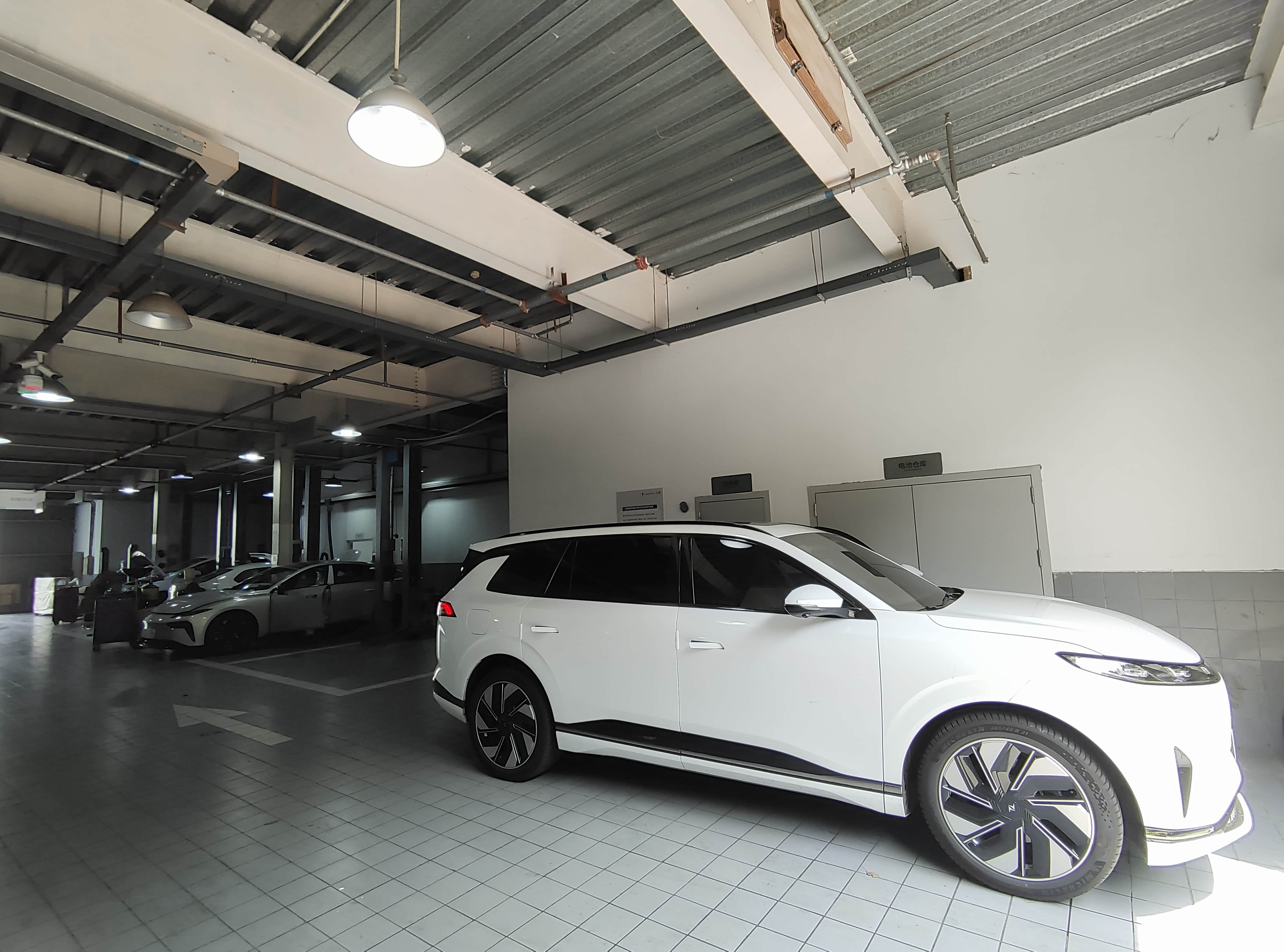 车间挺大,能同时容纳十几台车同时维修保养,但是车间也太热了,没有空调没有风扇,保养师傅说让我别锁车,去他们办公室坐着吹空调,也进去跟他们交流了一下