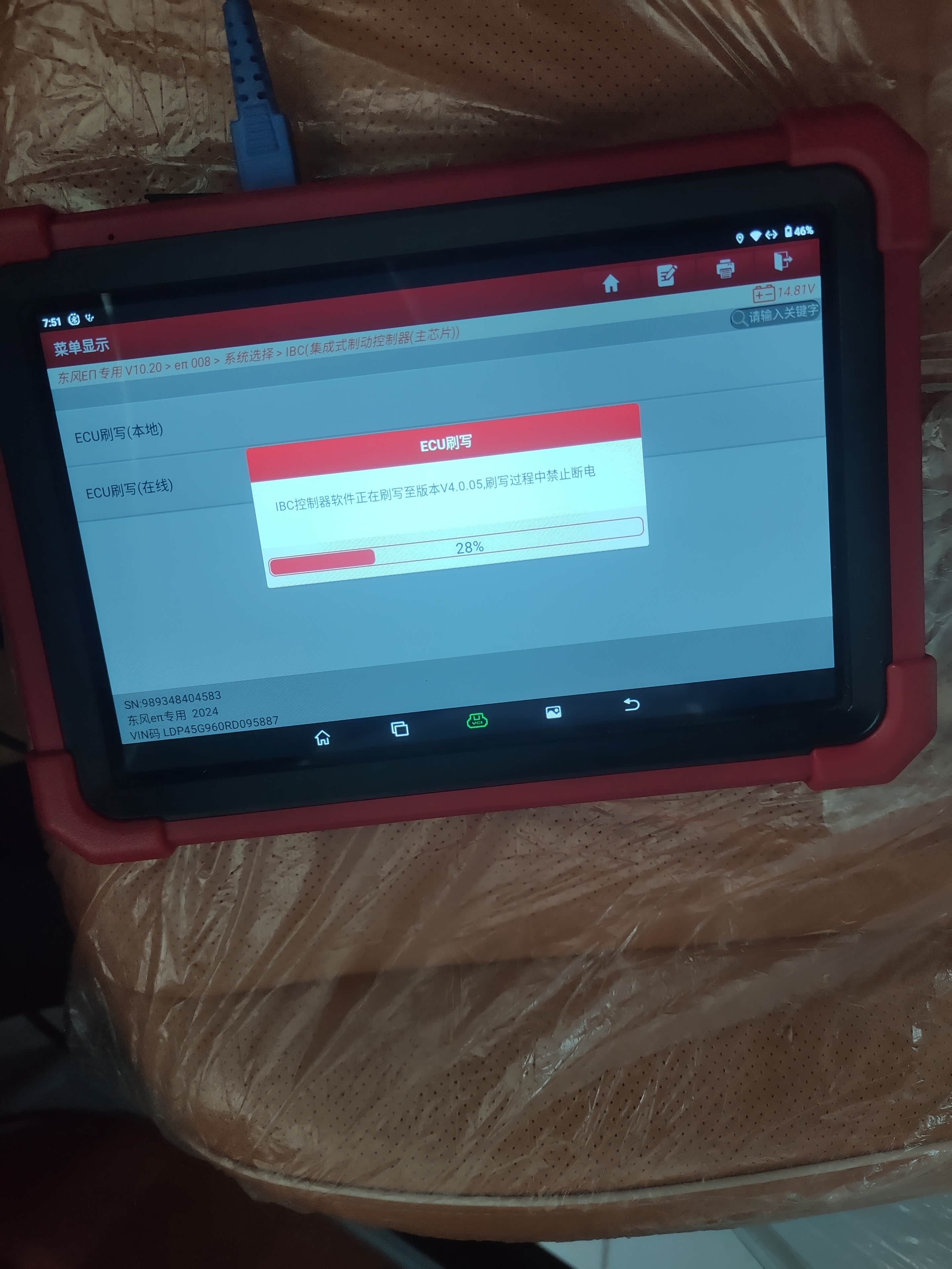 我仔细看了一下是元征的汽车电脑接上了汽车的OBD接口,在进行诊断和传输数据
