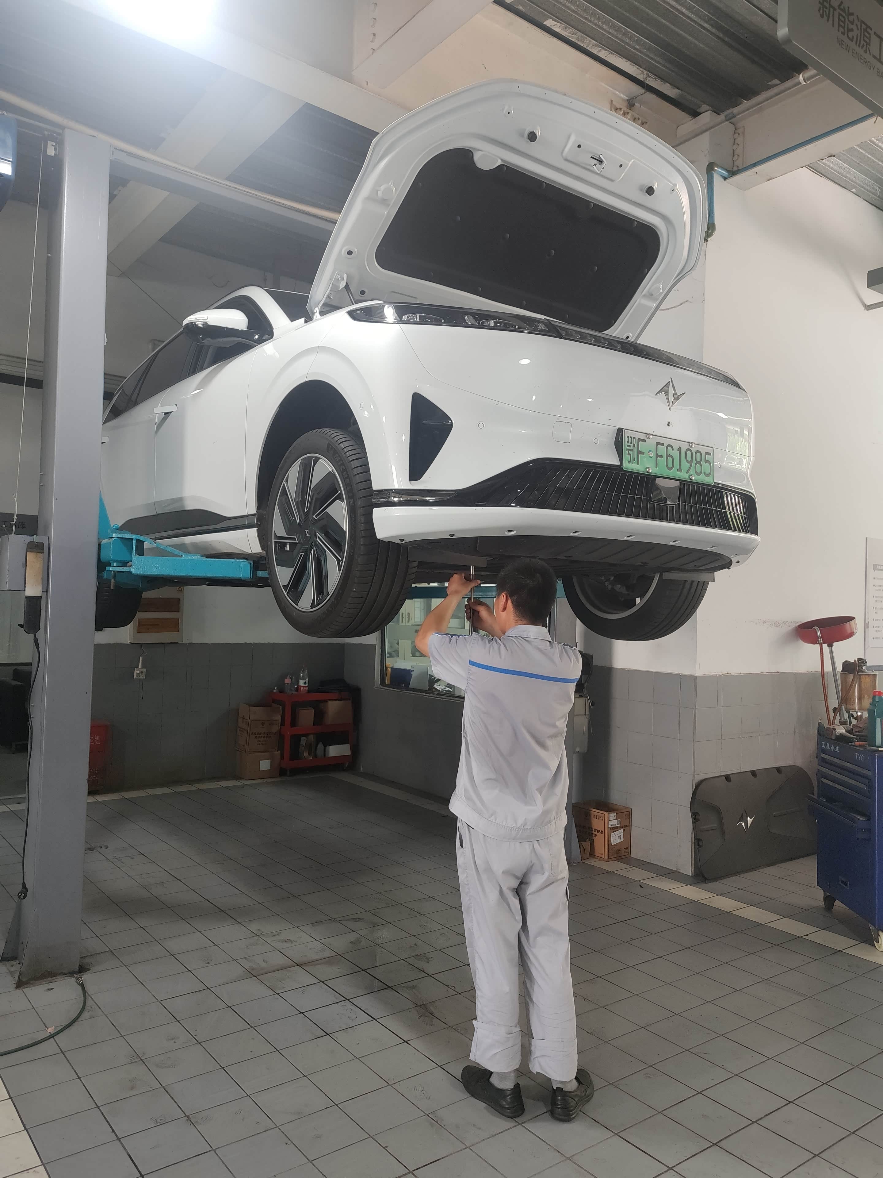 电池包完好,师傅细心检查底盘