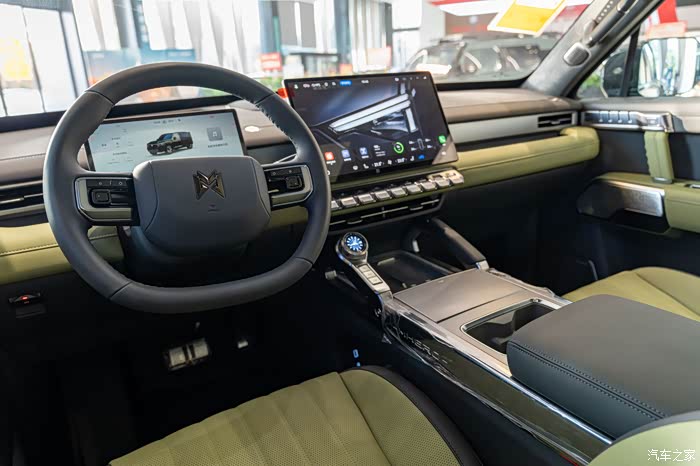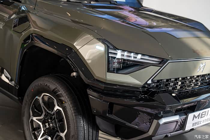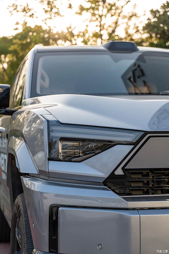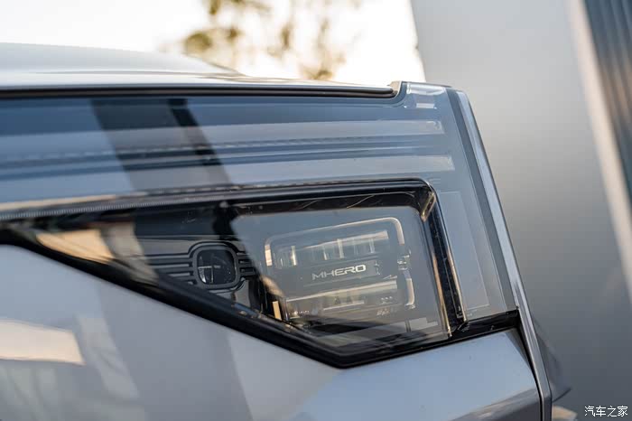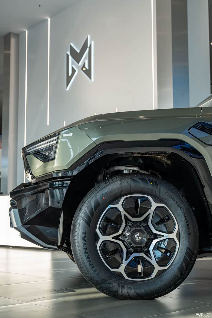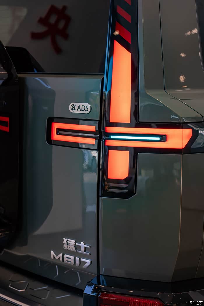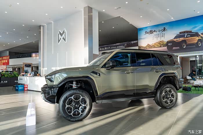 还没进店就被门口的M817试驾车勾引住了,没办法太威猛。第一眼印象压迫感拉满,实车远比照片震撼!车头方正中带着立体棱线,配上可点亮的猛士Logo,有种不怒自威的气势。