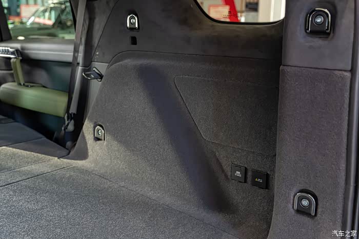 这次先从后面看看车内,硬派越野的侧开后备厢门。