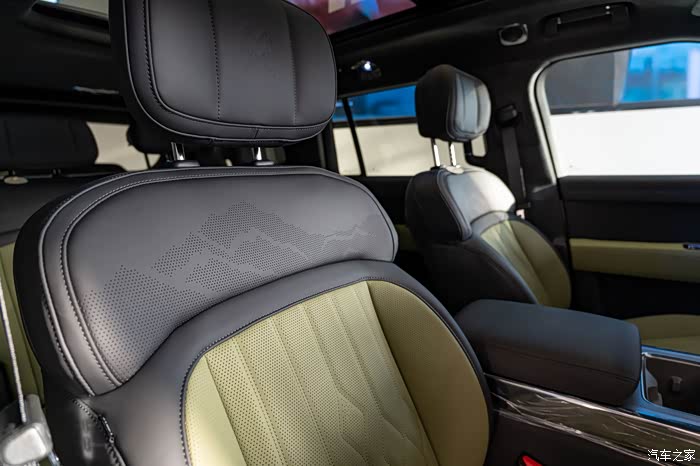 舒适层面,配置了NAPPA真皮全功能座椅,前排双加热、双通风、8点按摩,还有山川剪影的打孔细节。