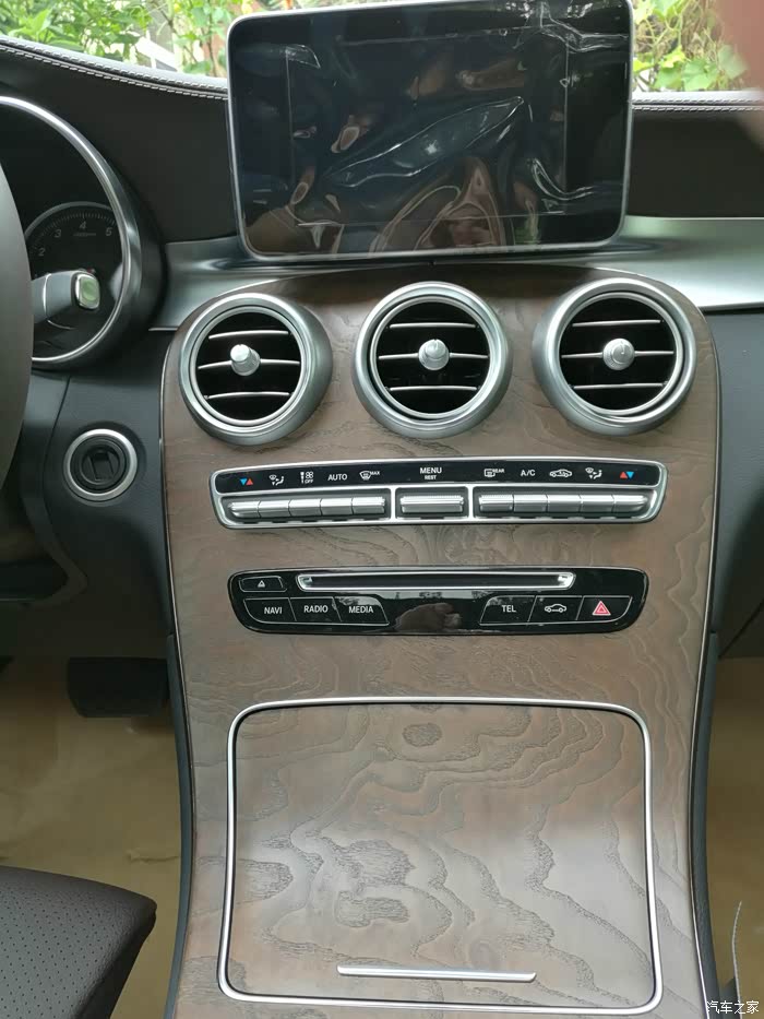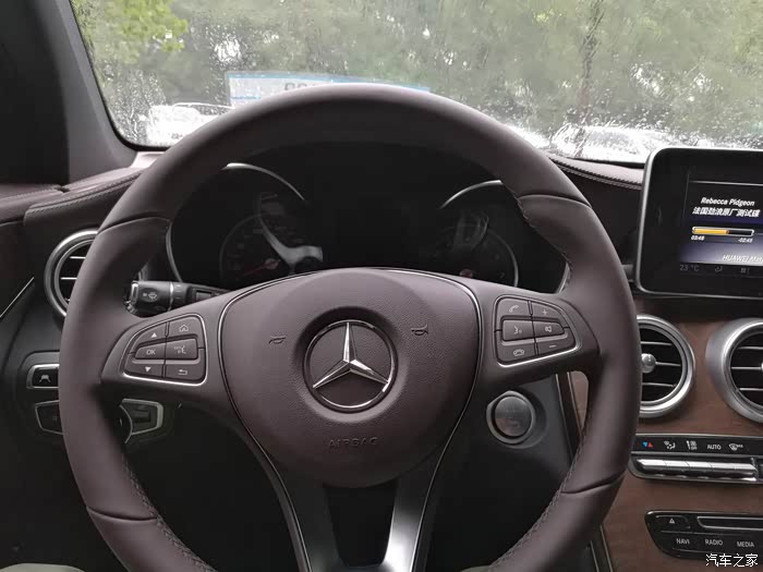 二、关于内饰的品质。此点是我最为心动最为满意的。自新一代S级推出以来,奔驰新车型的整车品质做到了台阶式的跃升(观点来自于AMS的夏东老师)。GLC无论从内饰配色(我选配的是棕内饰)、设计线条、视觉触感(人老了,特别喜欢实木和皮质的搭配,此观点不适用小鲜肉)和功能性整合方面(极简的按钮设计逻辑,符合大家风范),完全达到或超越了C级平台应赋予其的定位,满眼的实木和皮革,流动舒展的线条组合,用精细的缝线和闪着迷人光泽的铝制件紧固地装配在一起,营造出奔驰特有的高贵和优雅,实在令我等**欲罢不能,所以还有车友纠结要不要选Q5,请用你的眼睛、手指和屁股蛋子去展厅体验一下,相信答案自明。当然,那个大宽边的悬浮屏实在是有点让人**,近50万的售价,还配一个大宽边的小屏幕,很山寨,很寒酸,绝对有损我大奔驰的贵族气质,特提出批评。但我心中的小恶魔分析,大屏方案必然会留给日后的小改款提高性价比之用,奔驰也很会算账。