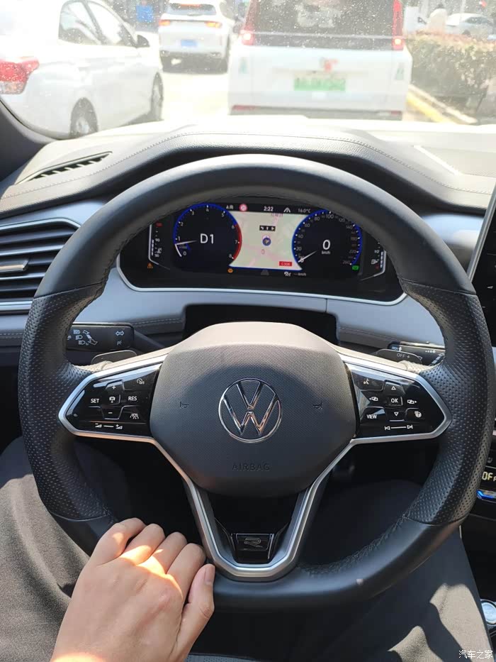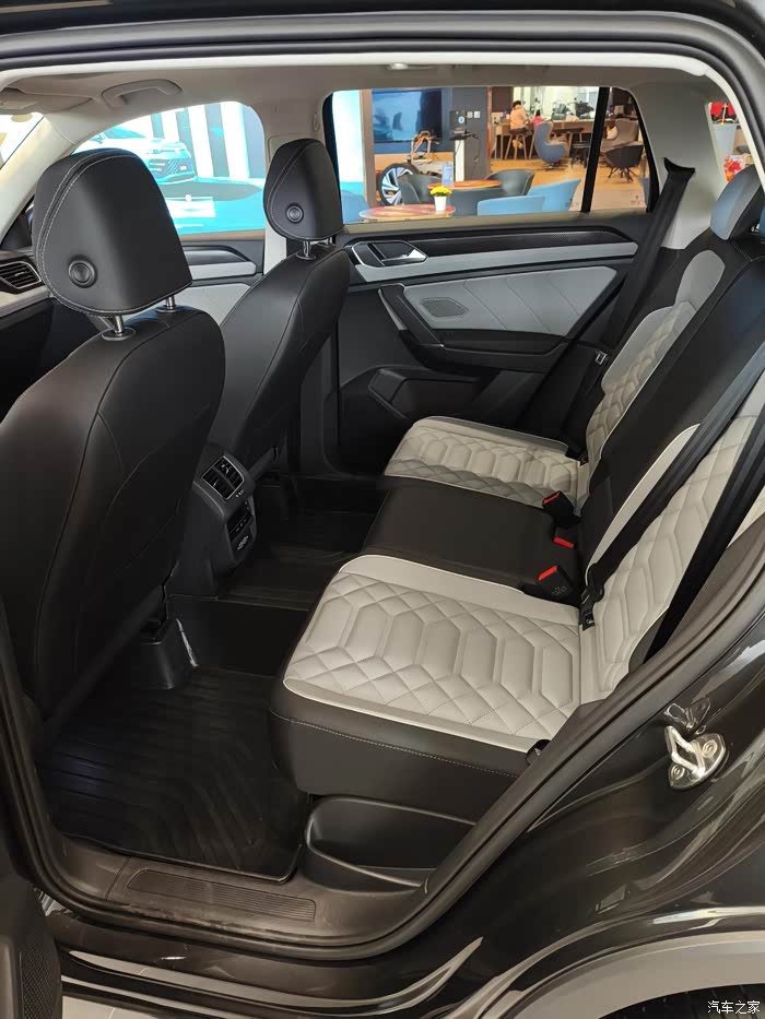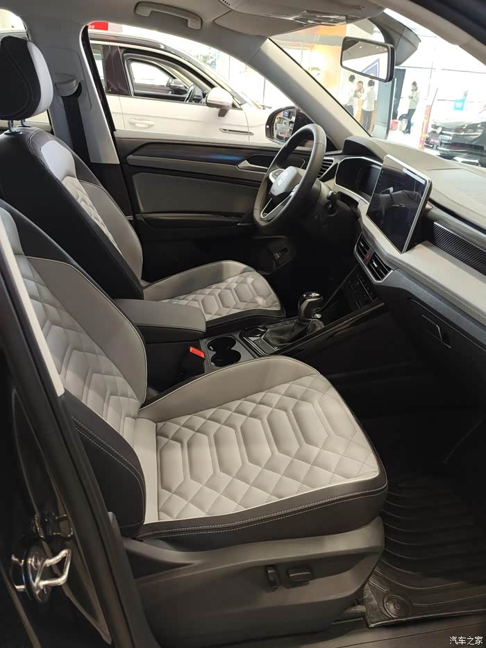 打开车门,内饰布局同样令人眼前一亮。整体内饰以黑色为主色调,搭配R-Line运动风格的设计元素,营造出浓厚的运动氛围。车内空间宽敞舒适,座椅采用了高品质的材料进行包裹,提供了良好的支撑性和乘坐舒适性。中控台搭载了三块大屏幕:10.25英寸液晶仪表、15英寸中控屏以及11.6英寸副驾娱乐屏,这些屏幕不仅提供了丰富的信息显示功能,还为车内乘客带来了更加便捷的娱乐体验。同时,车内还配备了电子怀挡换挡机构、旋钮式操作等便捷配置,提升了驾驶的便捷性。