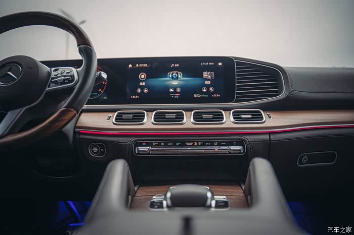 说到这个实木与真皮的方向盘,此前老的车型使用类似方向盘的车型一般都不配备方向盘加热功能,或者只有除了木饰以外的部分有加热。全新GLS解决了木饰和方向盘加热功能之间的种种矛盾,这个也是奔驰对豪华不懈追求的一种体现吧。