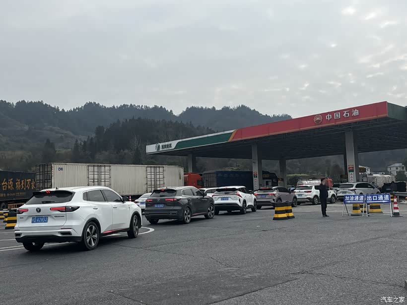荆州服务区加油口已然排起长队,竟还未到春节返程高峰,看着车流攒动,感叹风云T9超长续航能力,不用跟着扎堆等加油,省心不少。?