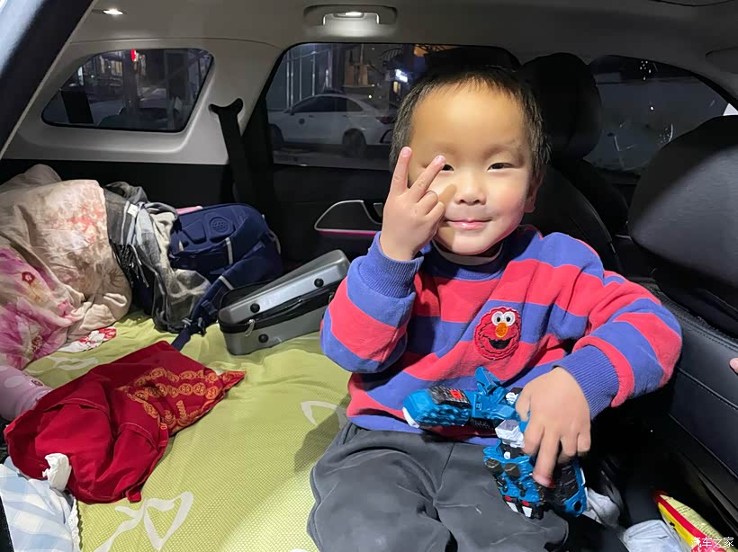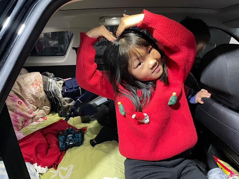 晚饭过后,给娃拍了几张可爱的旅途照,便准备歇下。把风云T9的座椅放平,秒变舒适大床,软乎乎的特别贴合,躺在上面浑身都放松,旅途的好觉,全靠这张移动大床啦。?