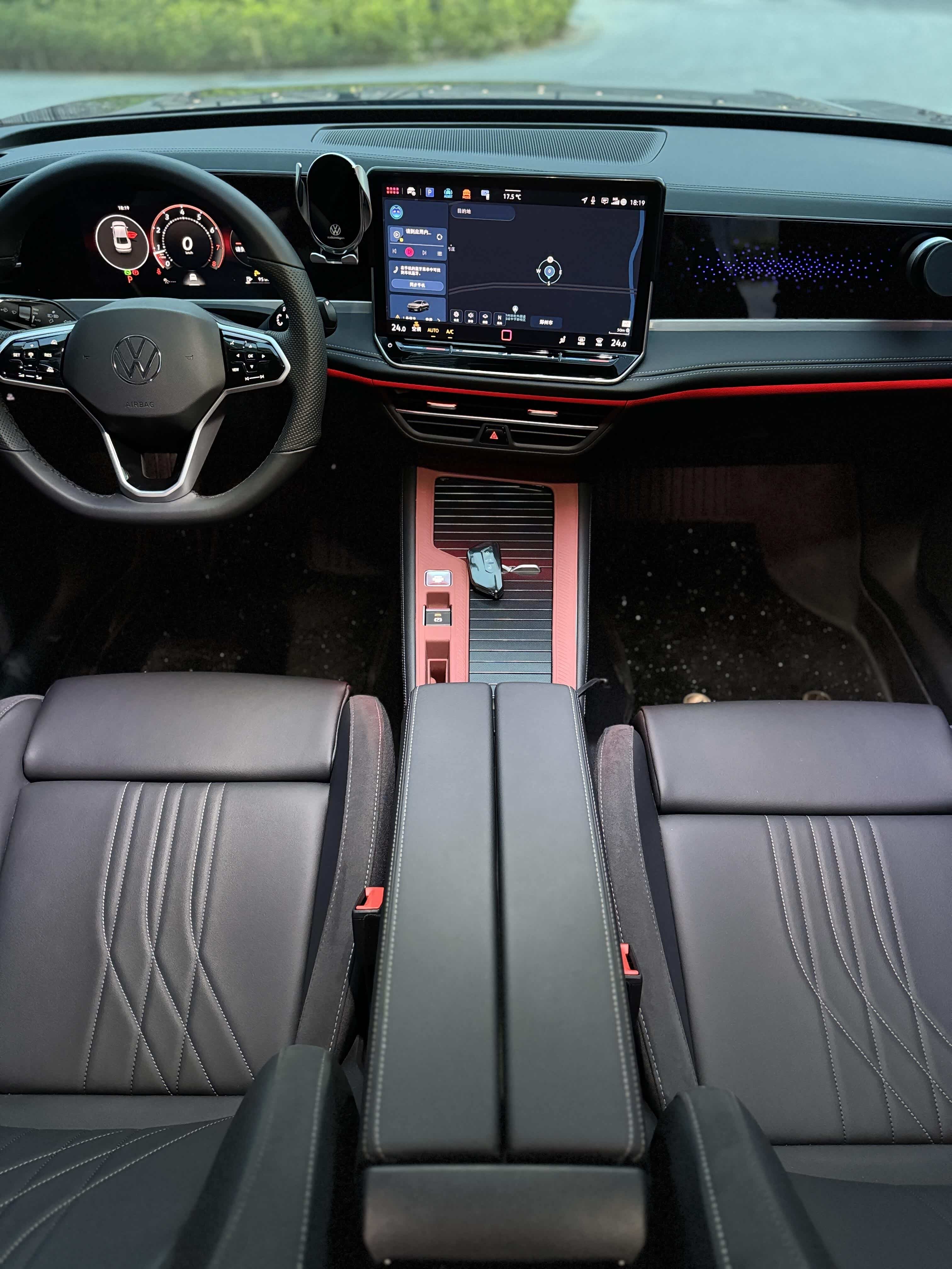 环抱式的中控台设计,让各种功能触手可及。10.25英寸全液晶数字仪表与12.9英寸中控大屏显示清晰,色彩鲜艳,车机系统在高通骁龙8155芯片的加持下,反应灵敏,操作流畅。导航、多媒体、车辆设置等功能界面简洁明了,还支持语音控制,一句“你好,大众”,就能轻松实现诸如播放音乐、查询路线等操作,真正做到了解放双手,让驾驶更加专注安全。