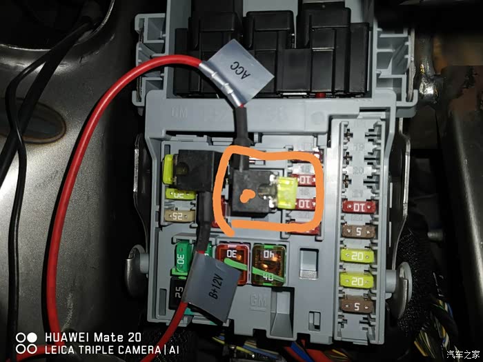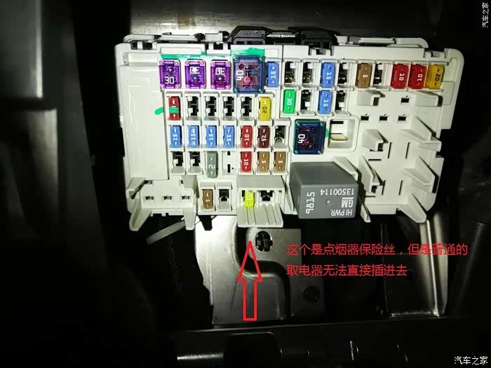 正常的取电器可以直接插在保险丝盒里面对应的保险丝插口,但是君威的保险丝盒非常奇怪,4S店说行车记录仪如要使用ACC来供电,那首选使用点烟器ACC保险丝最好,如果出了问题,也是最方便修理的,可以直接换掉点烟器插口。但是大家可以看图,新君威的点烟器保险丝20A的位置,正常的取电器无法直接插进去,因为保险丝口四周是塑料板,取电器一般都是横竖插在保险丝插口上,这个20A的塑料板刚好当着了取电器的电线,所以问题来了,如果想要点烟器的保险丝供电,那是不是有保险丝转接口之类的东西存在,因为我看昂科威上面就有点烟器保险丝转接口,但是君威的却找不到吗,求助大神如何破解这个谜团。