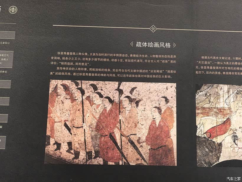 徐显秀墓壁画以其宏大规模和生动内容著称: 墓室现存壁画面积约330平方米,描绘了墓主夫妇宴饮、仪仗出行、天象神兽等场景,人物形象超过200个,生动再现了北齐时期贵族生活与多民族交融的历史风貌;壁画采用“简易标美”画风,笔触简练而传神,体现了北齐宫廷绘画的高超技艺。