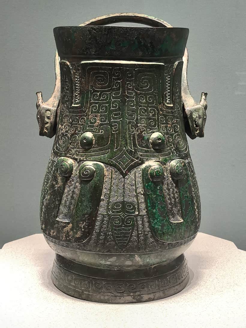 商兽面纹龙首提梁卣,山西吕梁石楼县二郎坡遗址出土。